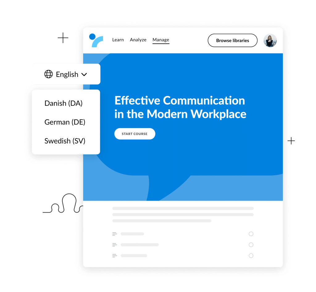 Training that works everywhere Give learners a clean, responsive experience that’s easy to access on any device—and in their preferred language.